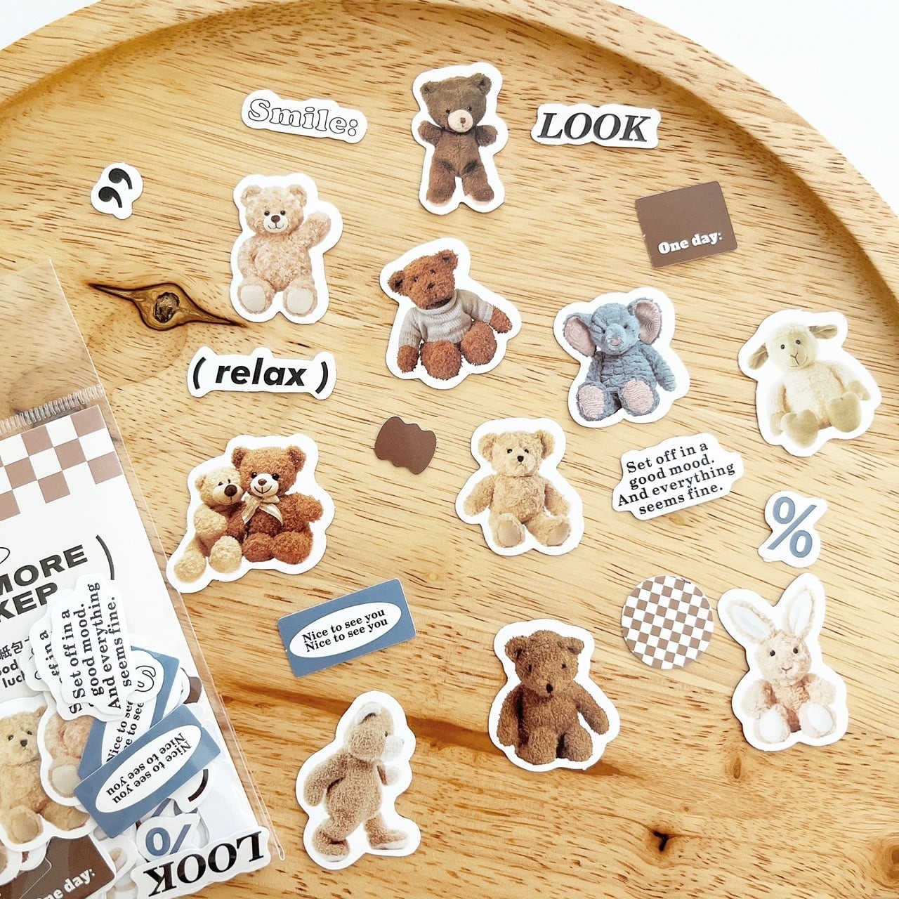 くまのイラストとそれに合わせて使える文字入りシールが入っています。