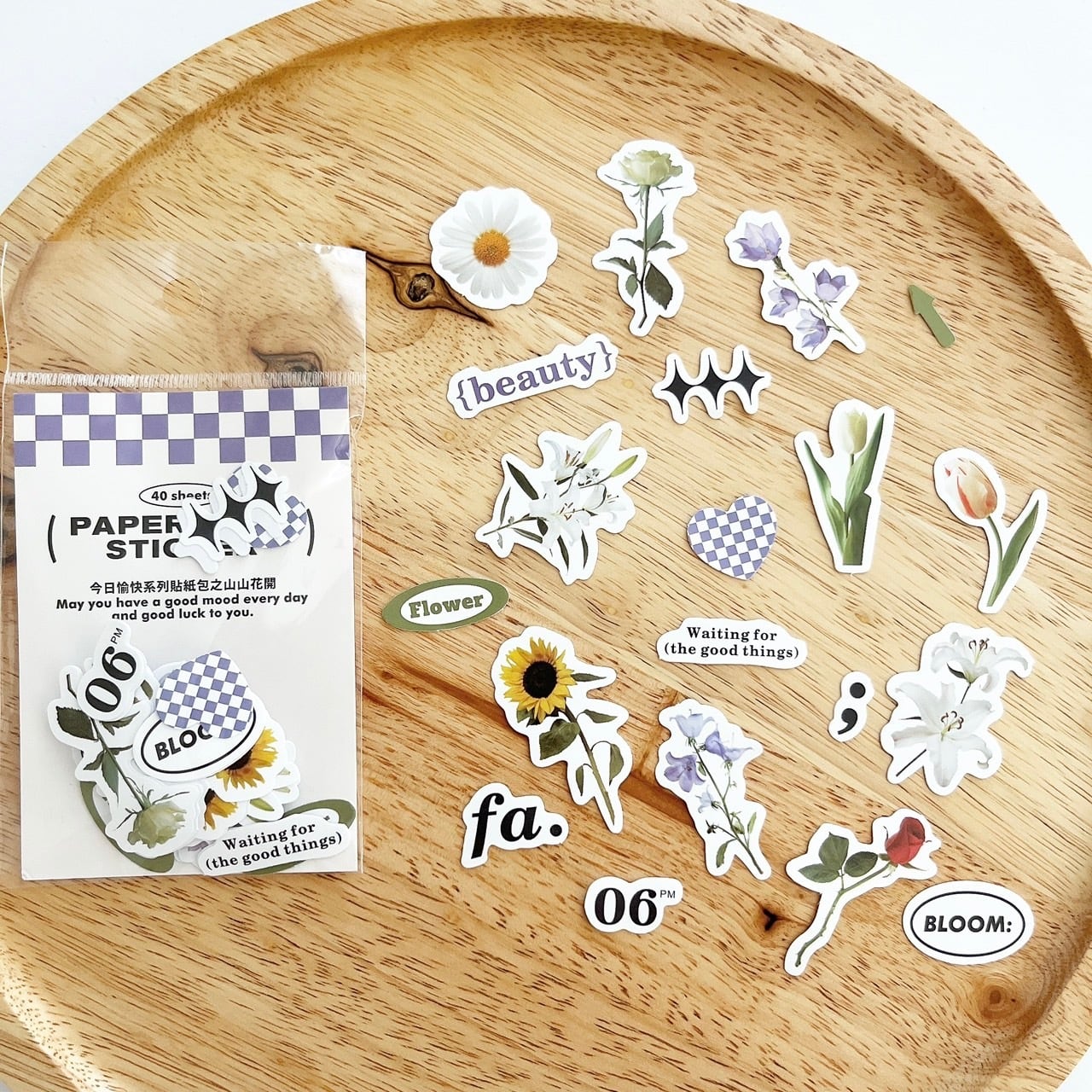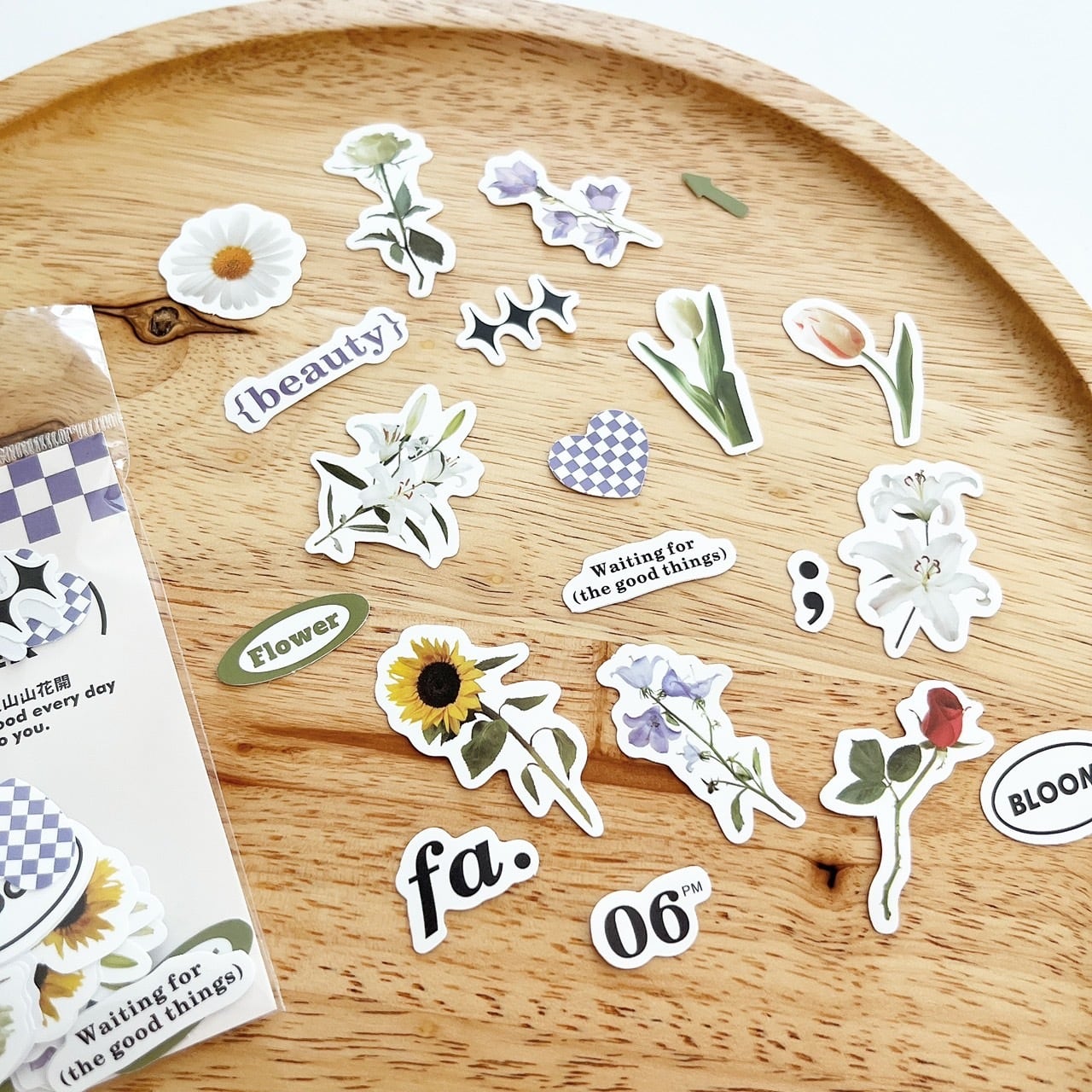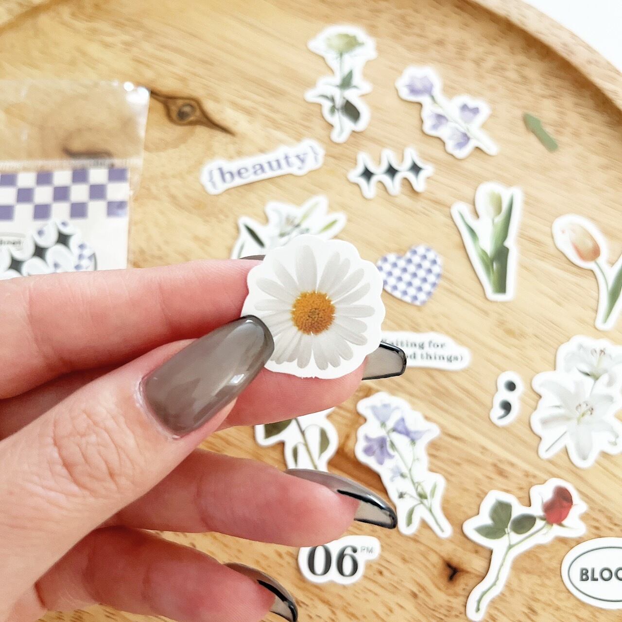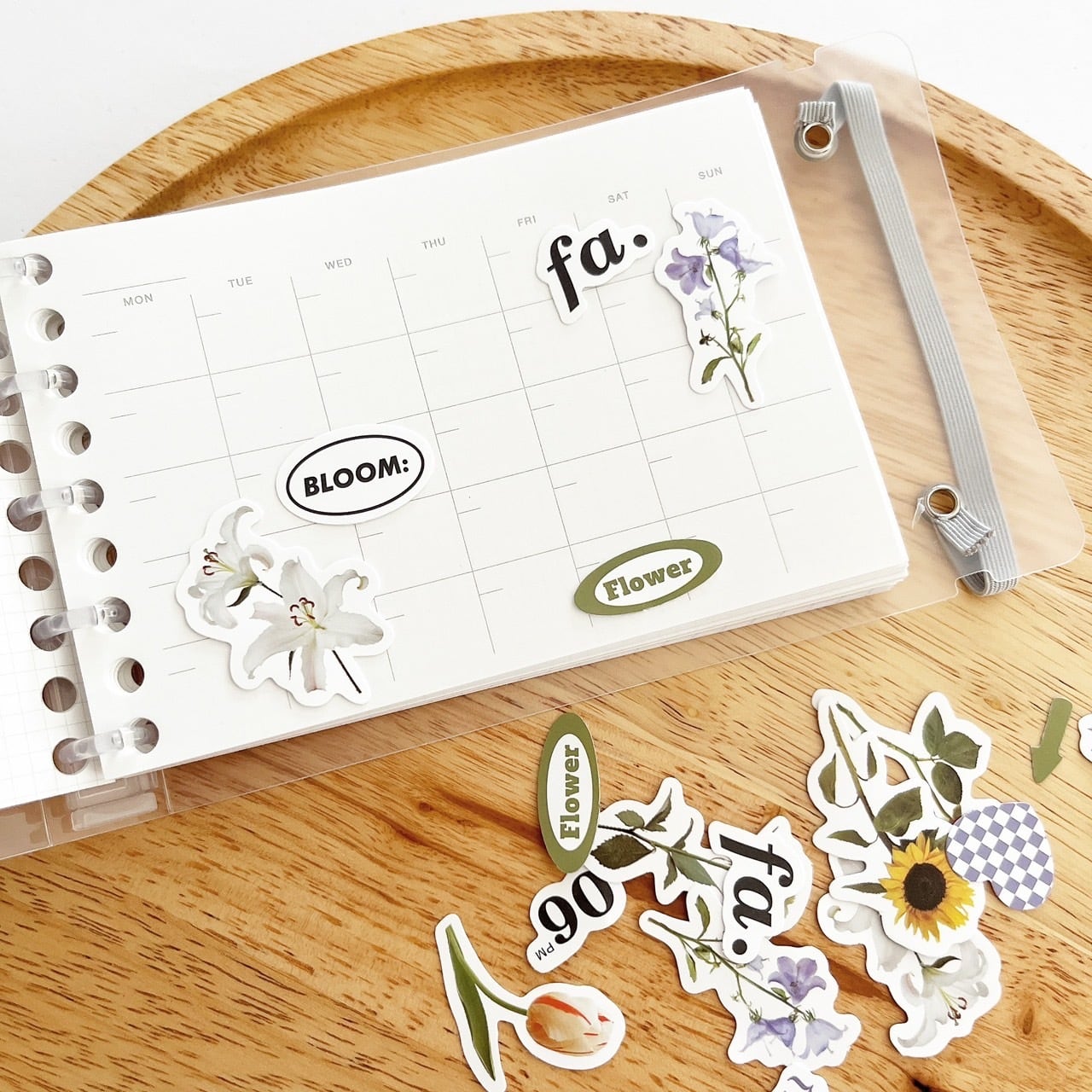 花のイラストとそれに合わせて使える文字入りシールが入っています。