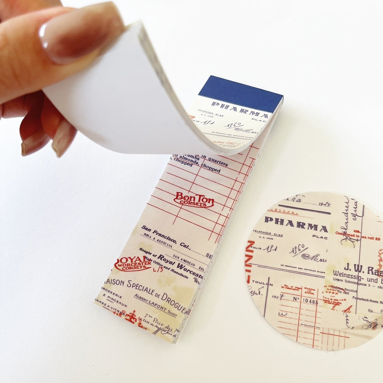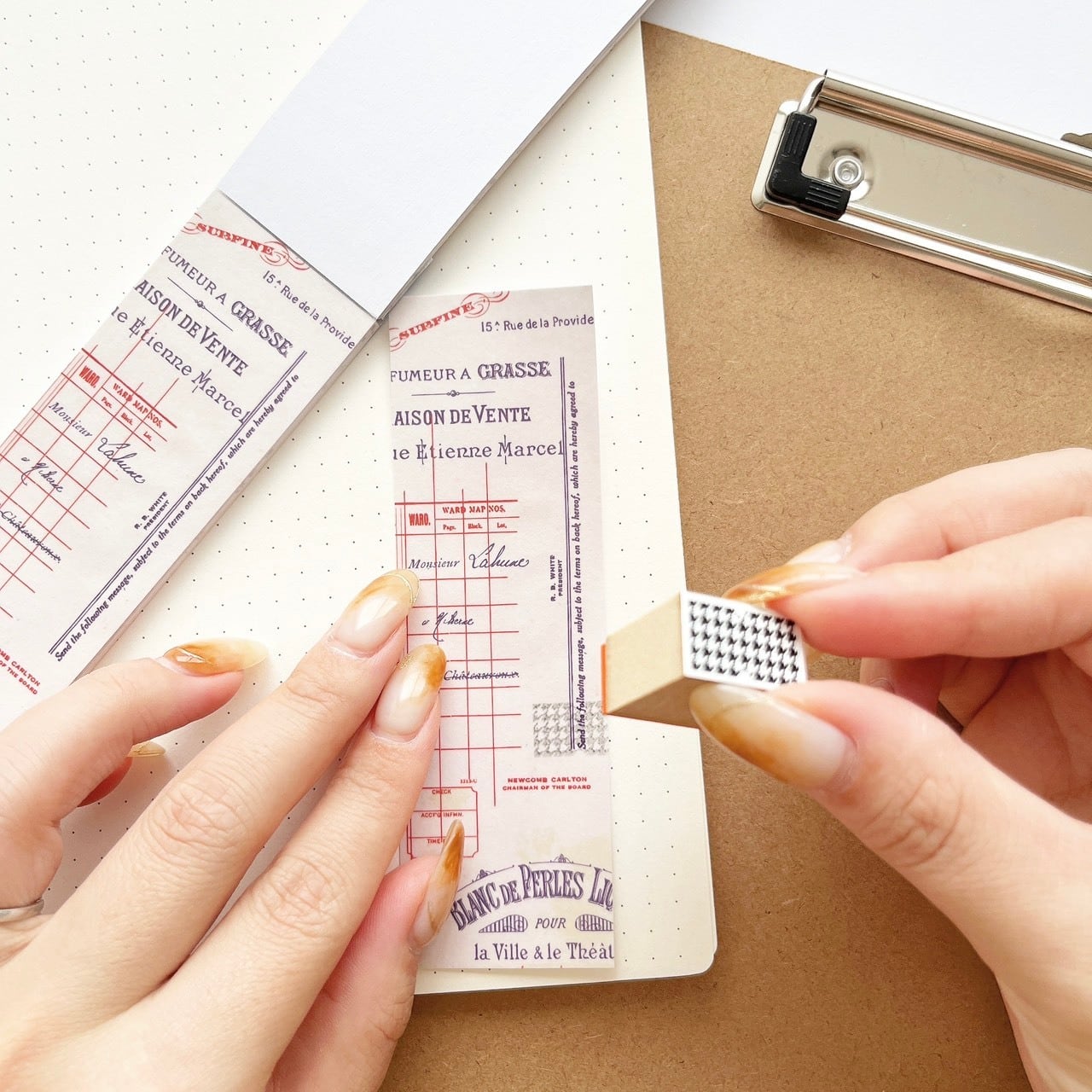 ヴィンテージっぽい雰囲気のあるシールは手でちぎって貼ったり、コラージュの背景として使えます。和紙素材なので透け感があり紙なじみもよくコラージュ素材としてぴったりです。