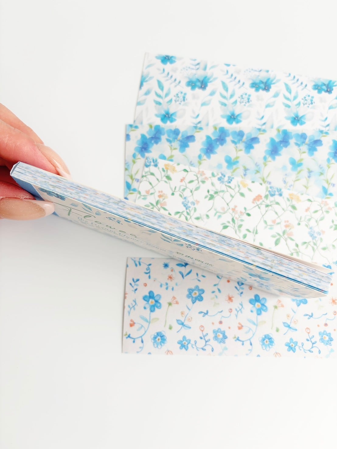 カッターナイフなどで15mm幅にカットしてマスキングテープのように使ったり、コラージュの背景として使えます。