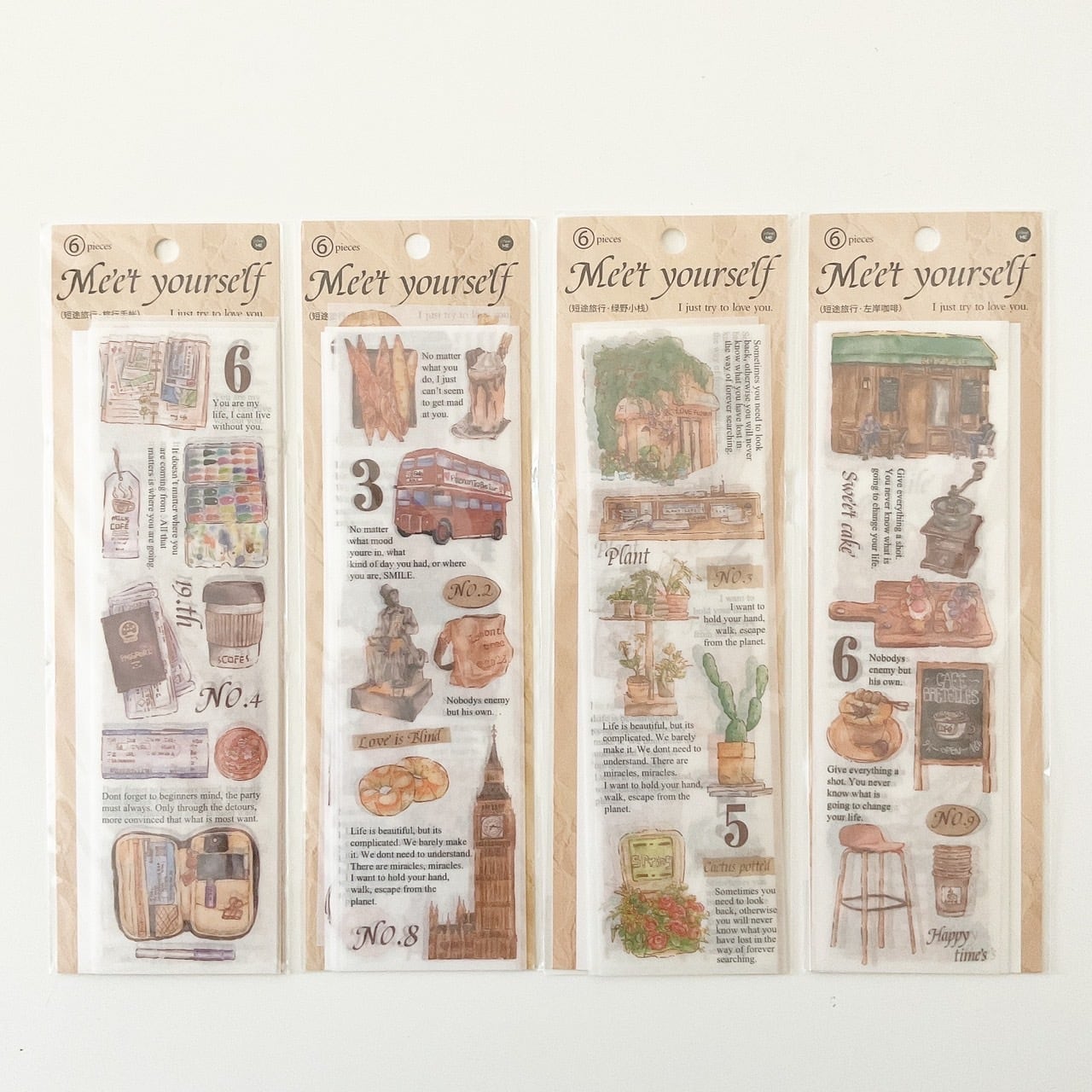 こちらの「水彩画ステッカー 手帳」と同じイラストです。絵柄が少し大きめのデザインとなっています。