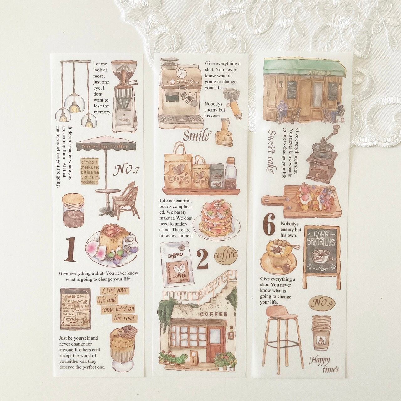 こちらの「水彩画ステッカー cafe」と同じイラストです。絵柄が少し大きめのデザインとなっています。