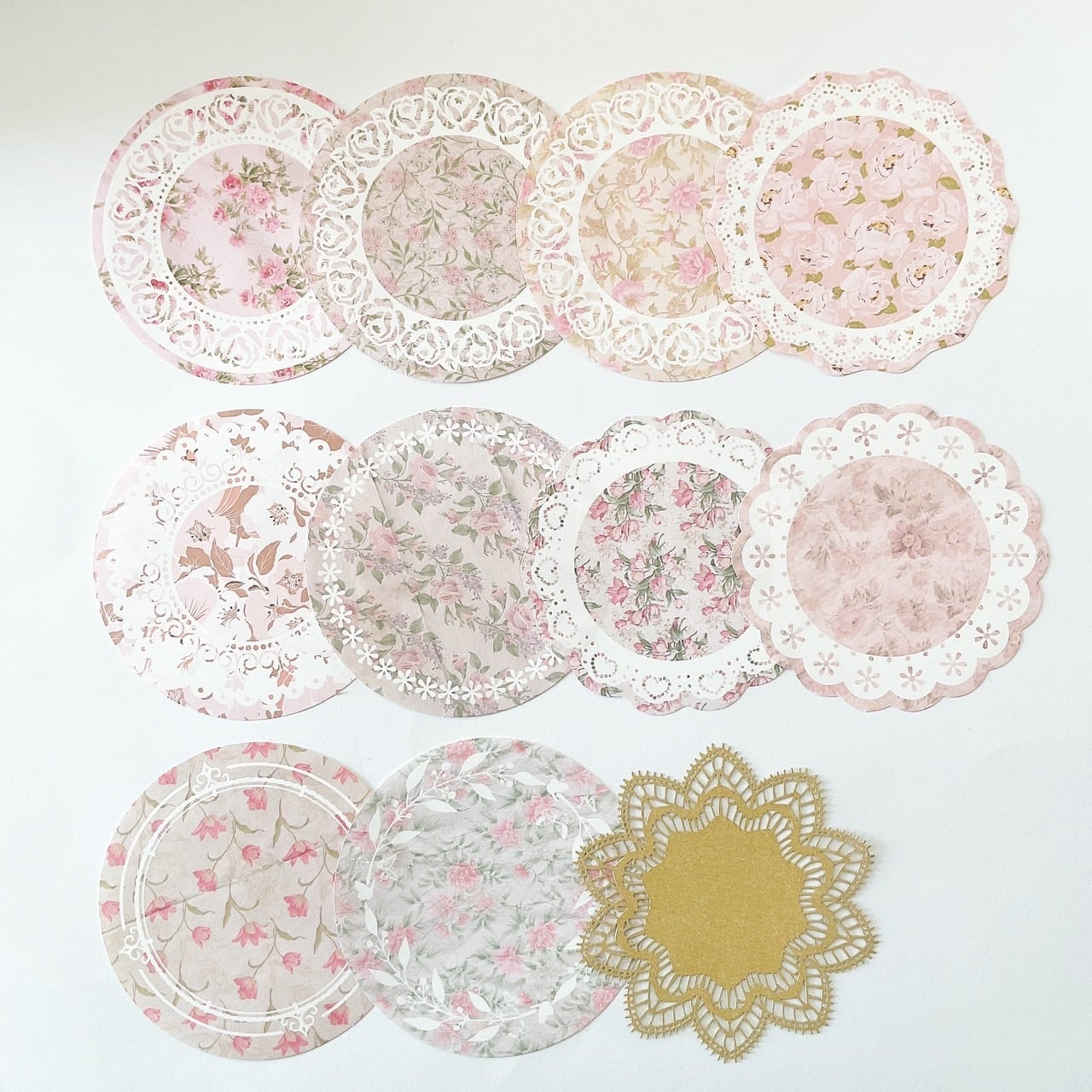 2種類のレース柄があり、どちらも繊細なデザインが特徴です。コラージュの素材やラッピングの素材におすすめです。